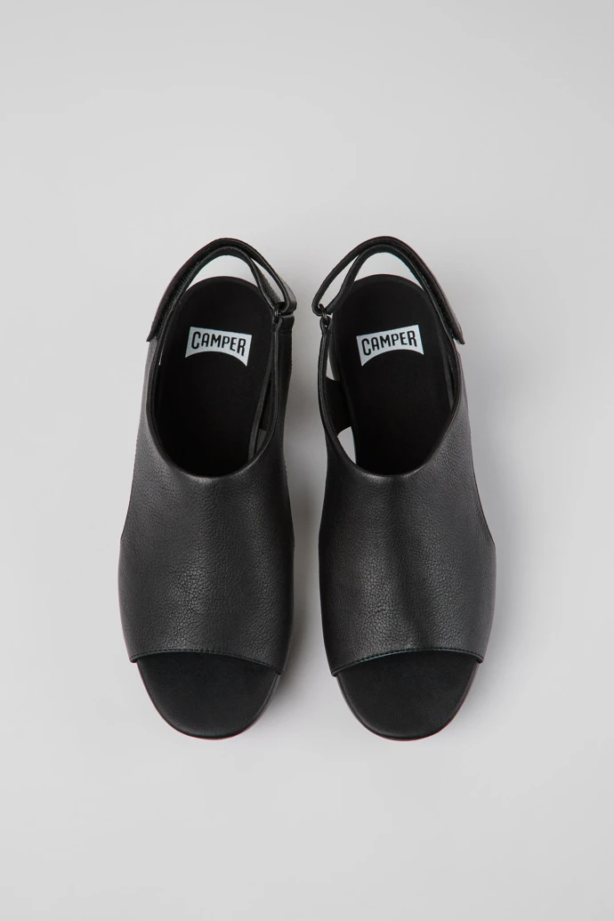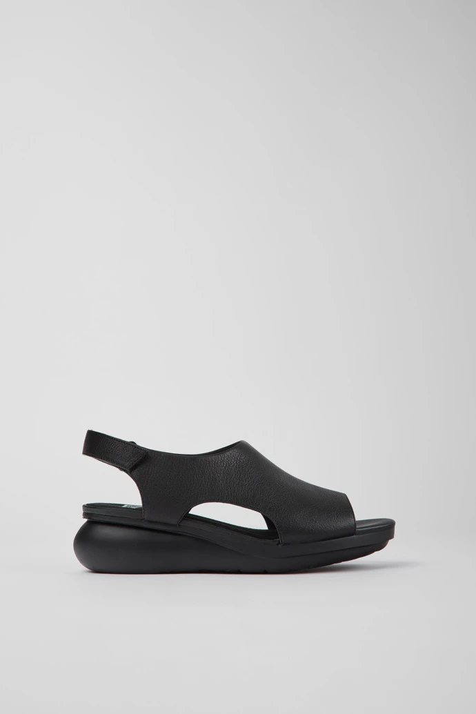 Black leather and elastic women’s sandals with XL EXTRALIGHT® outsoles.
