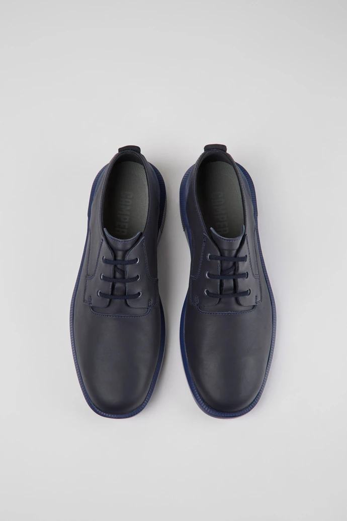 Men’s navy shoes with laces. Full-grain leather and EVA outsole.