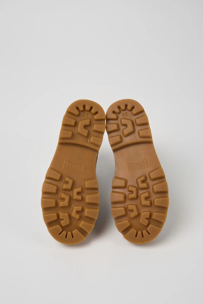 Gray leather kids’ ankle boots with OrthoLite® Recycled™ removable footbeds and rubber outsoles.