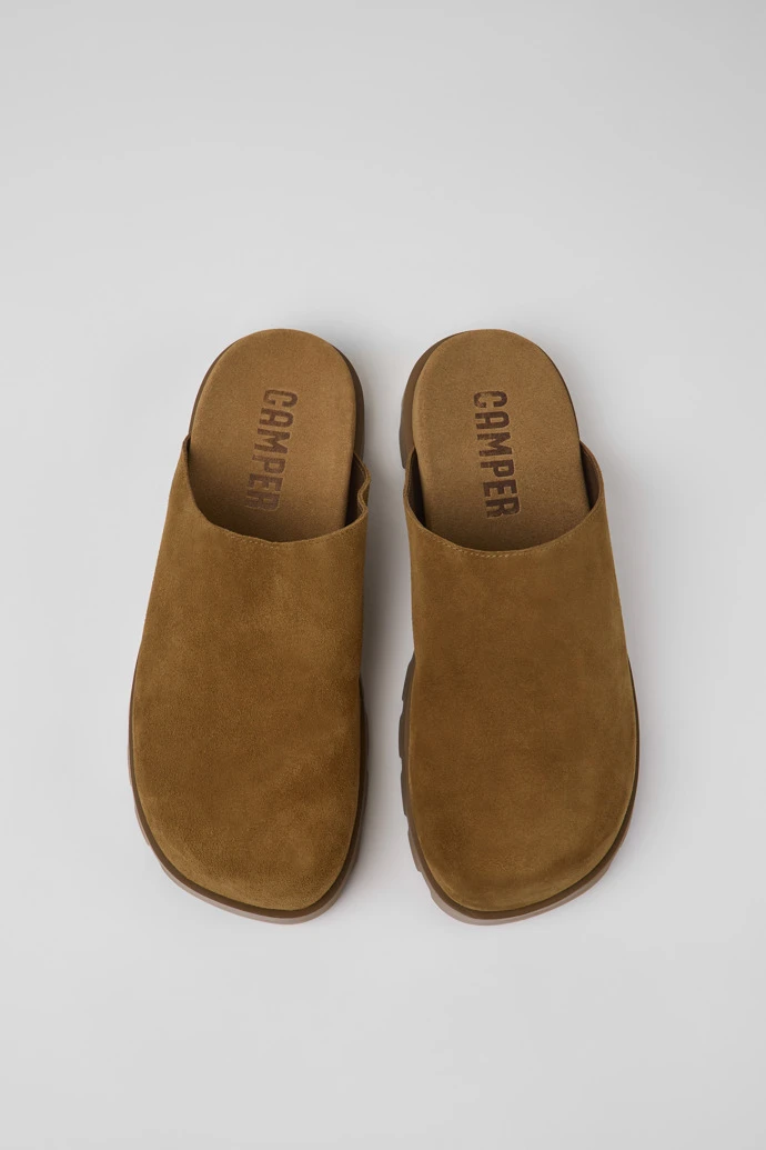 Brown leather men’s clogs with XL EXTRALIGHT® outsoles.
