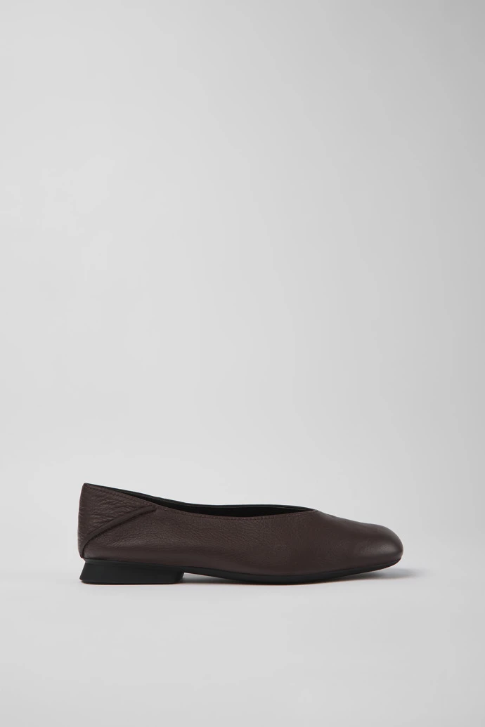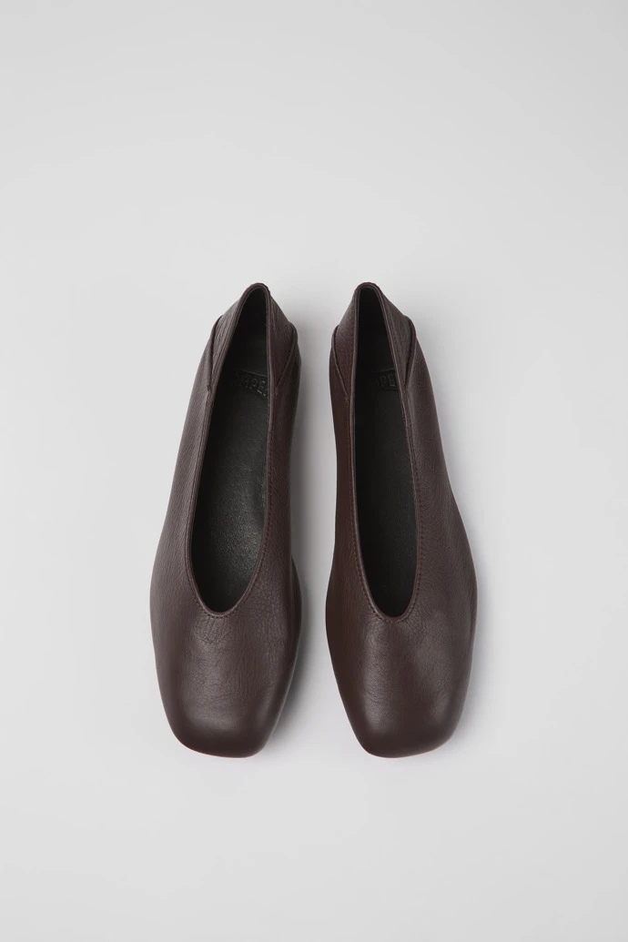 Brown leather women’s ballerina flats with OrthoLite® Recycled™ non-removable footbeds and TPU outsoles (20% recycled).