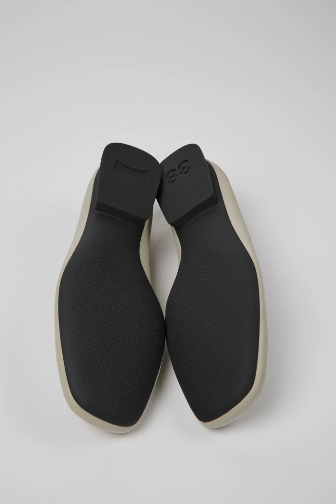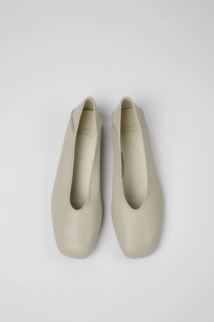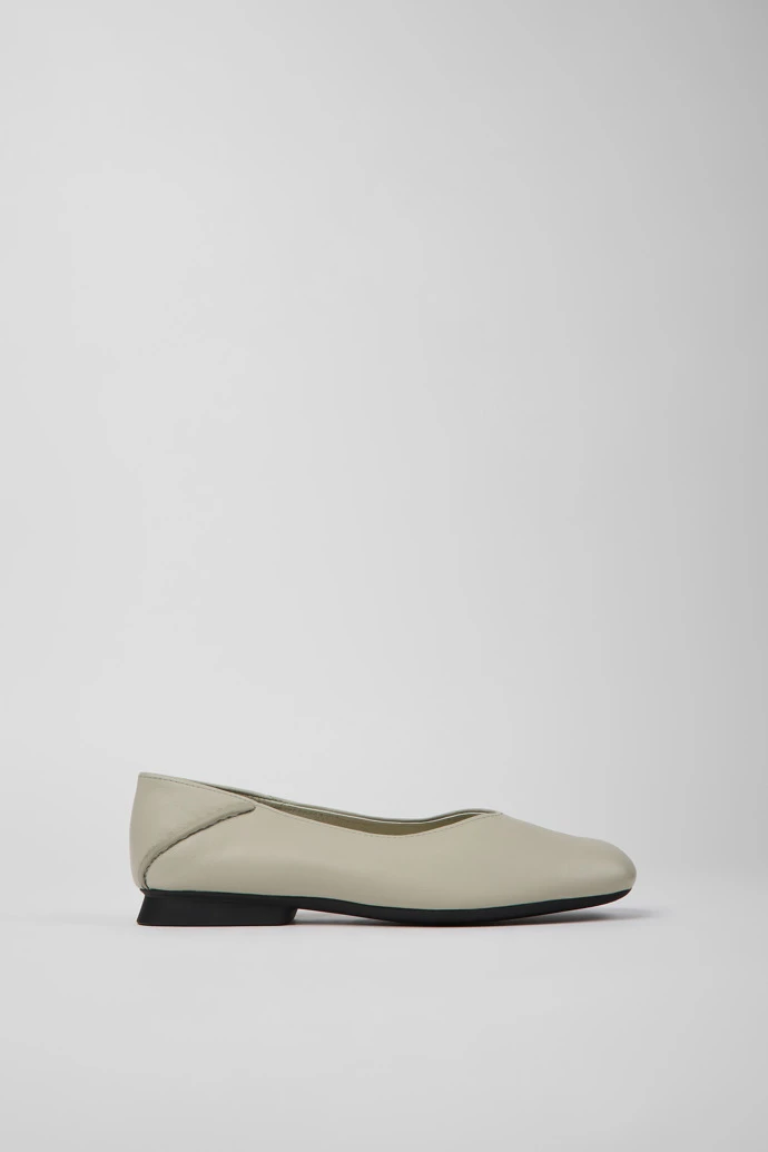 Gray leather women’s ballerina flats with OrthoLite® Recycled™ non-removable footbeds and TPU outsoles (20% recycled).