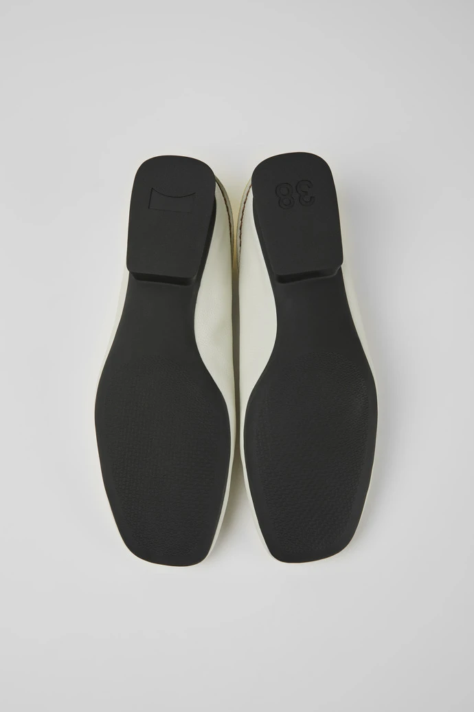 Casi Myra White And Yellow Leather Ballerina Flats For Women