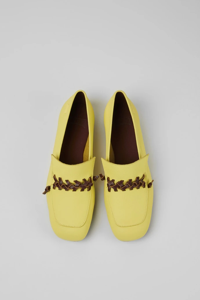 Casi Myra Yellow And Brown Leather Loafers For Women