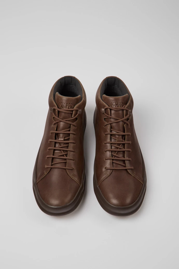 Casual brown ankle boot for men. Soft leather upper and rubber outsole.