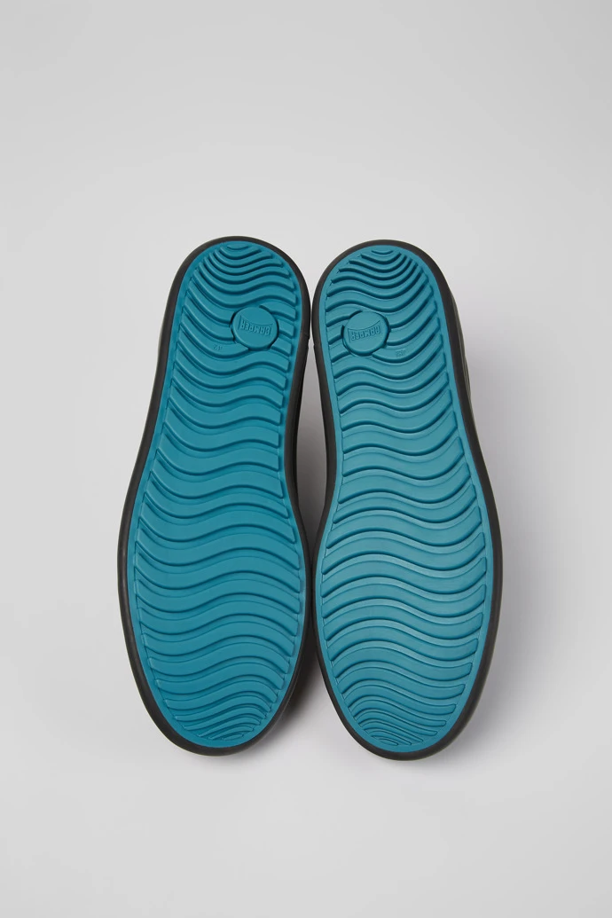 Gray leather men’s shoes with OrthoLite® Recycled™ footbeds and rubber outsoles.