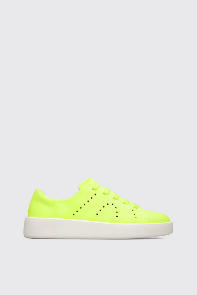 Neon yellow minimalist women’s sneaker. Nubuck leather and EVA outsole.