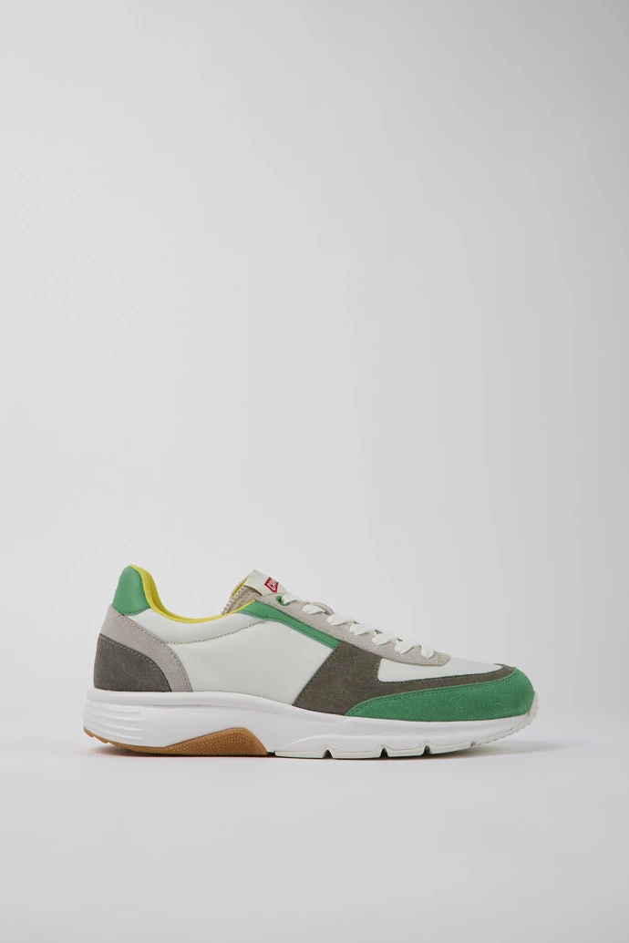 Multicolored recycled polyester and nubuck men’s sneakers with 70% EVA and 30% rubber outsoles.