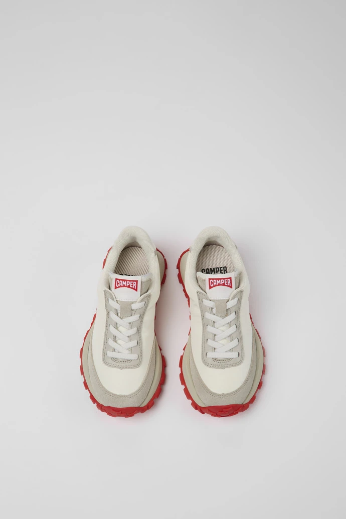 White textile and leather kids’ sneakers with 70% rubber and 30% EVA outsoles.