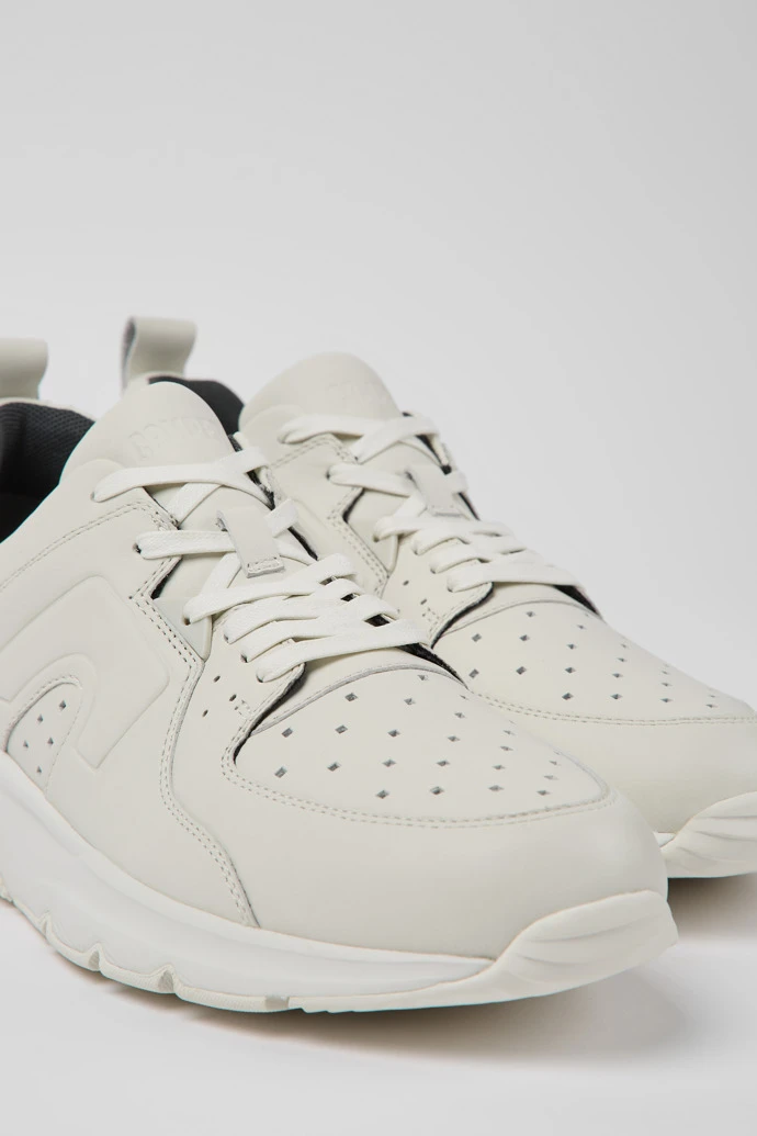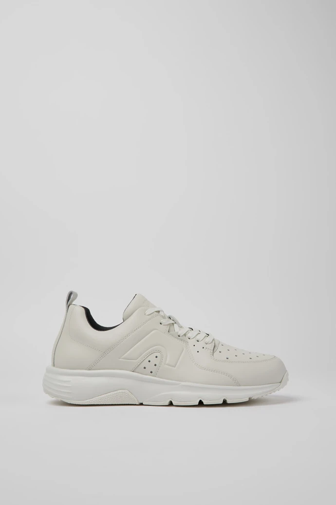 White sneaker for men. Soft leather upper with white laces. White outsole made of 70% EVA and 30% rubber.