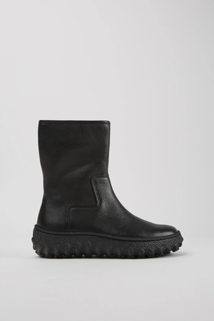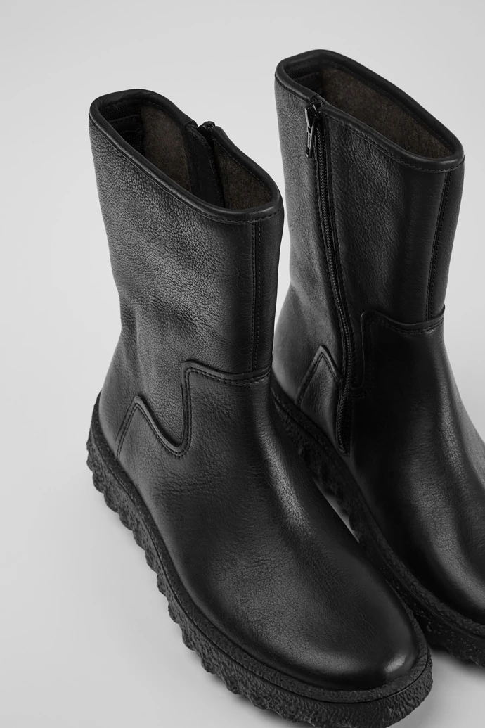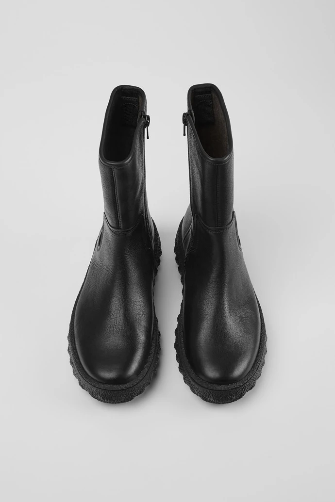 Black leather women’s boots with OrthoLite® Recycled™ footbeds and Michelin rubber outsoles (27% natural).