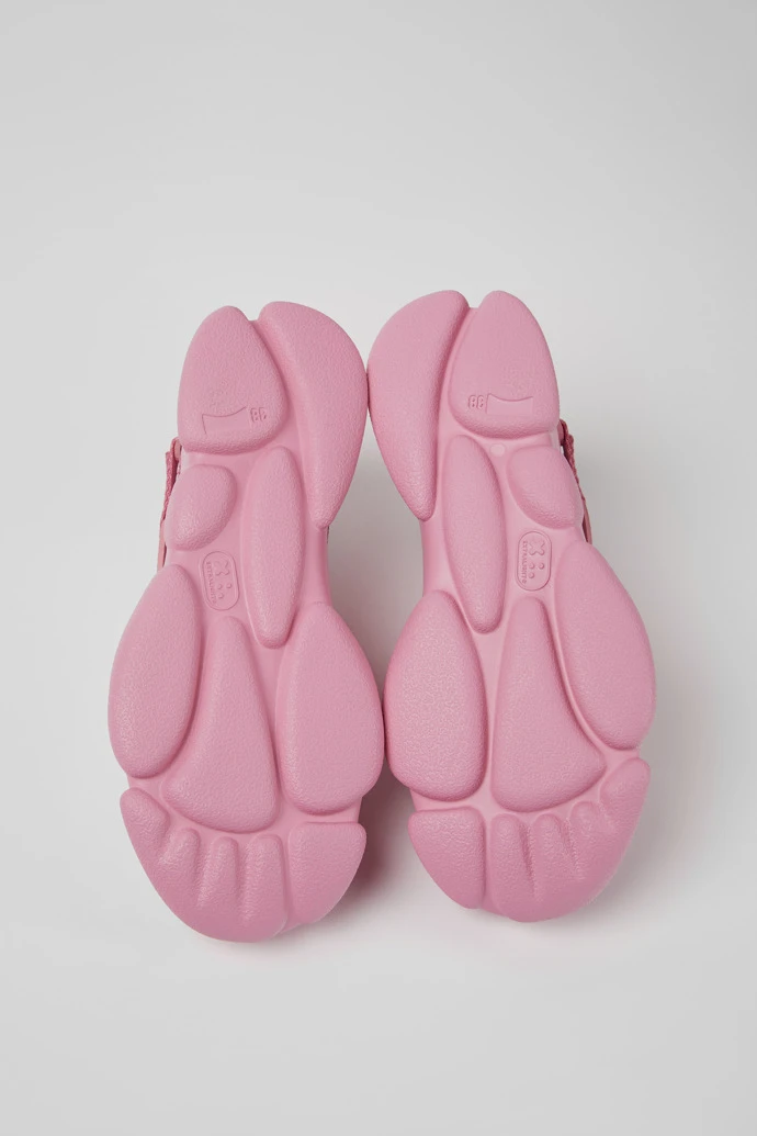 Pink leather and textile women’s sneakers with OrthoLite® Recycled™ removable footbeds and XL EXTRALIGHT® Organix™ 3.0 outsoles (30% bio-circular compounds).