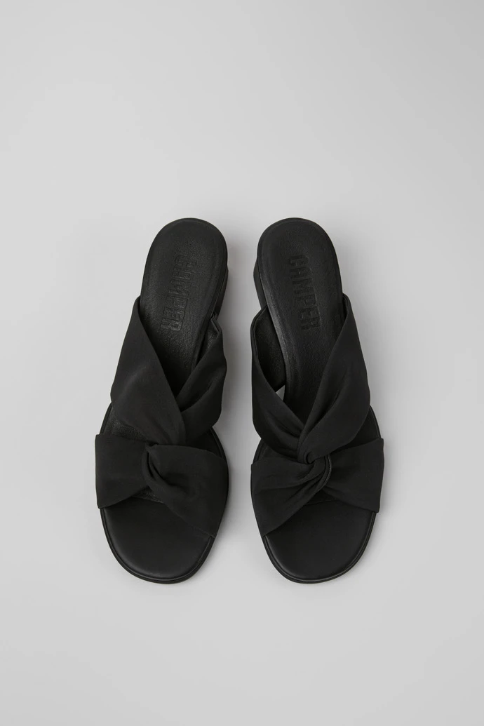 Black 100% recycled PET women’s sandals with TPU outsoles (20% recycled).