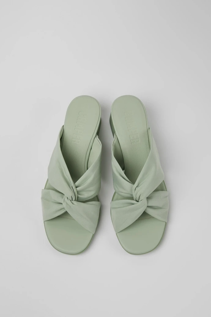 Green 100% recycled PET women’s sandals with TPU outsoles (20% recycled).
