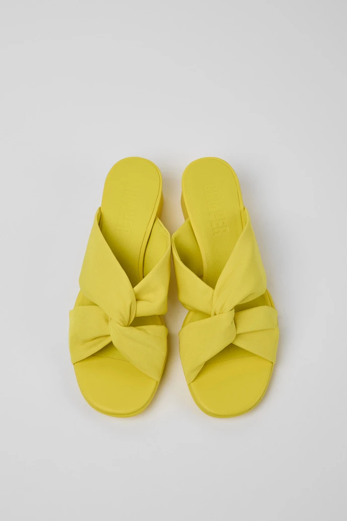 Yellow 100% recycled PET women’s sandals with TPU outsoles (20% recycled).