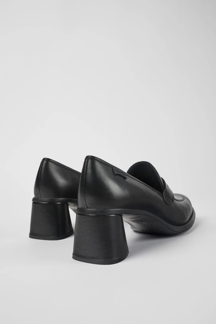 Black leather women’s heels with OrthoLite® Recycled™ footbeds and leather-lined rubber outsoles.