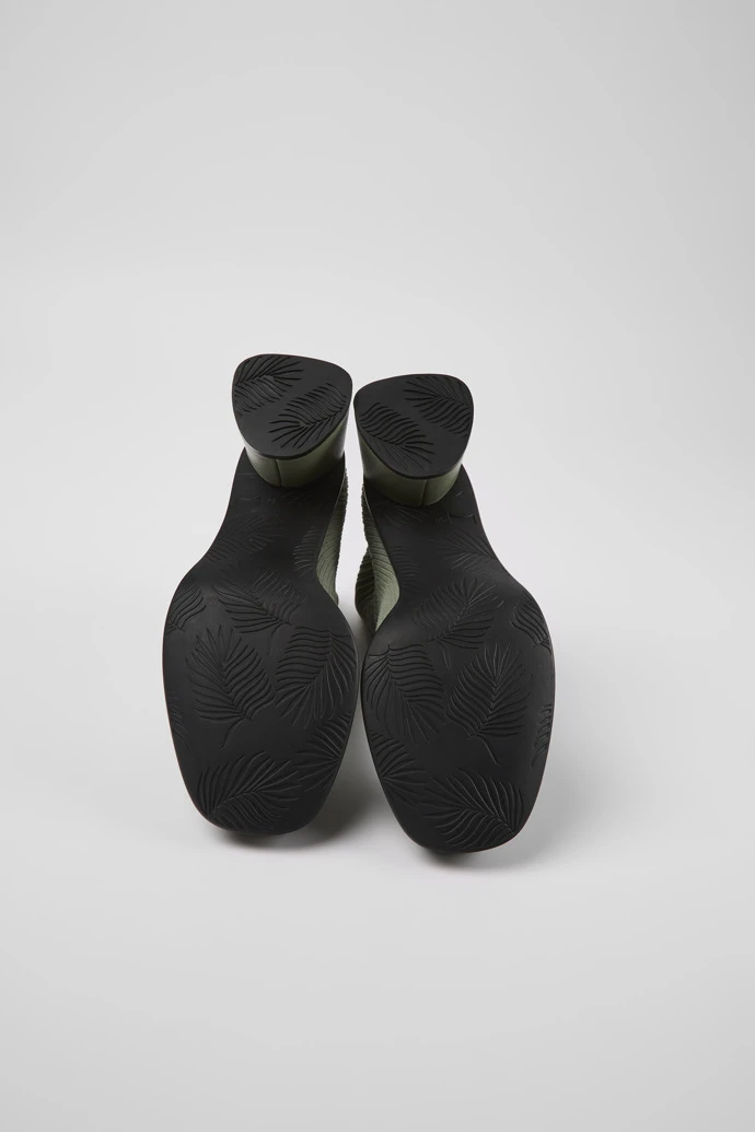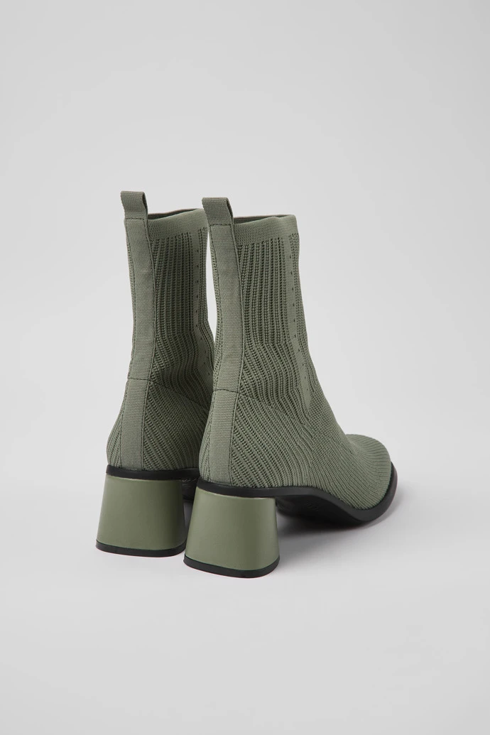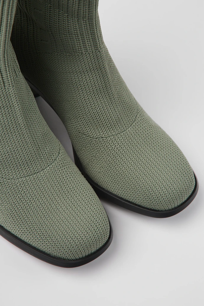 Green water repellent recycled PET one-piece knit women’s boots with OrthoLite® Recycled™ non-removable footbeds, and rubber and ABS outsoles.