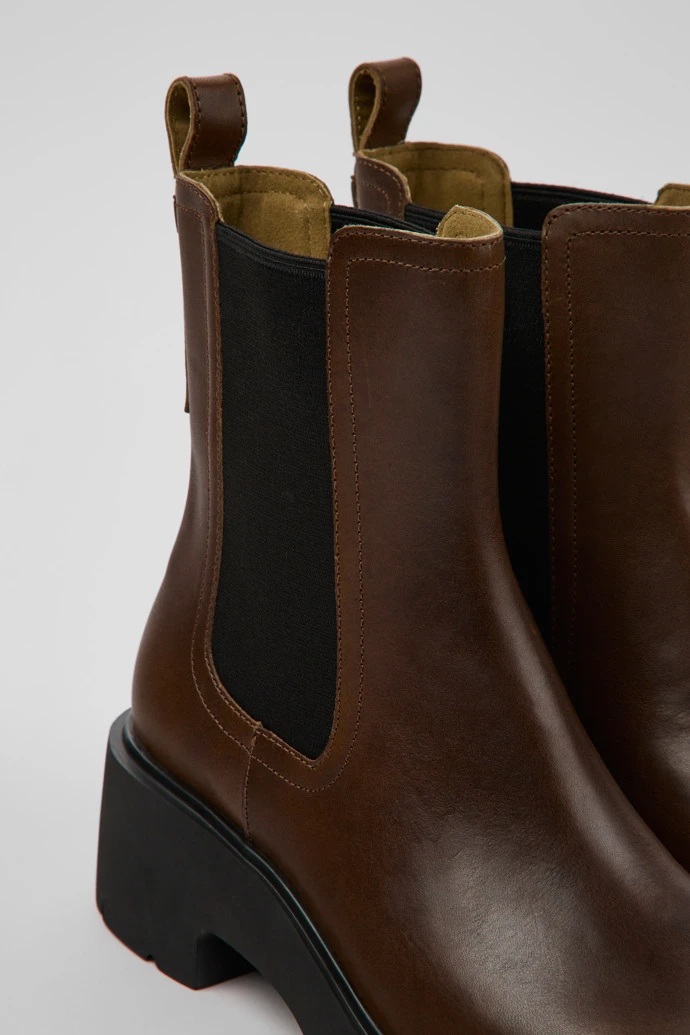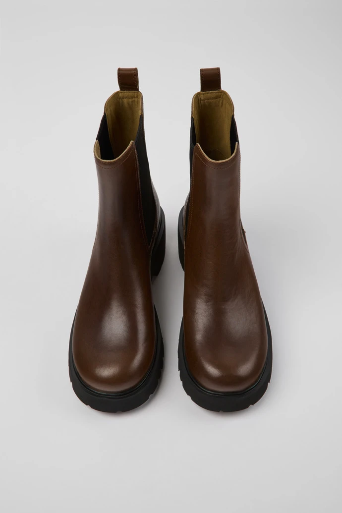 Brown leather women’s Chelsea boots with OrthoLite® Recycledâ„¢ footbeds and EVA outsoles.