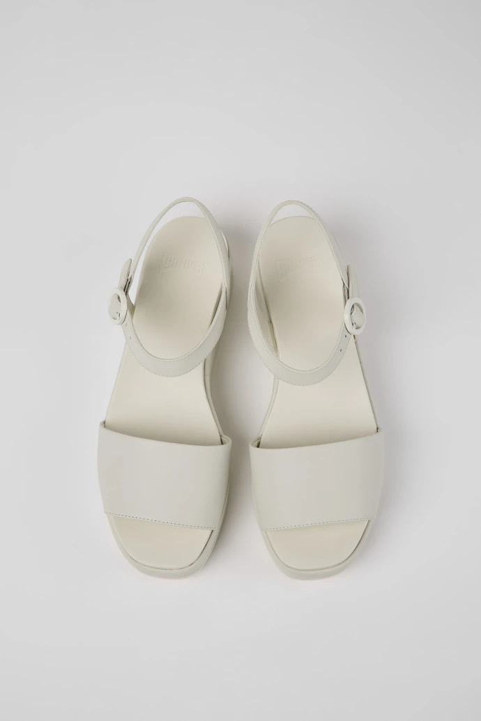 White leather women’s sandals with non-removable PU footbeds and PU outsoles.