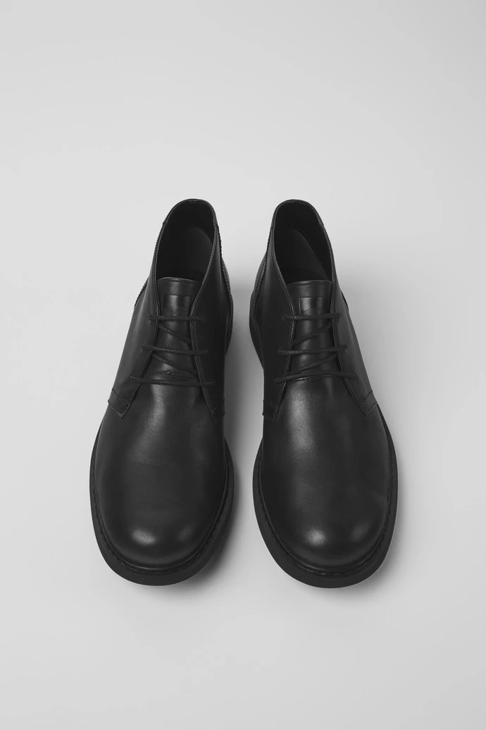 Men’s black ankle boot with rounded toe. Full grain leather and EVA outsole with vertical cuts.