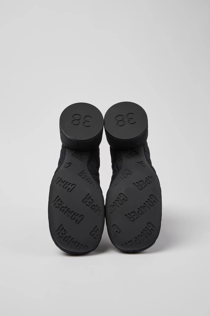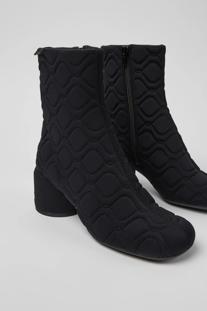 Black textile women’s boots with OrthoLite® Recycled™ non-removable footbeds, and ABS and TPU outsoles.