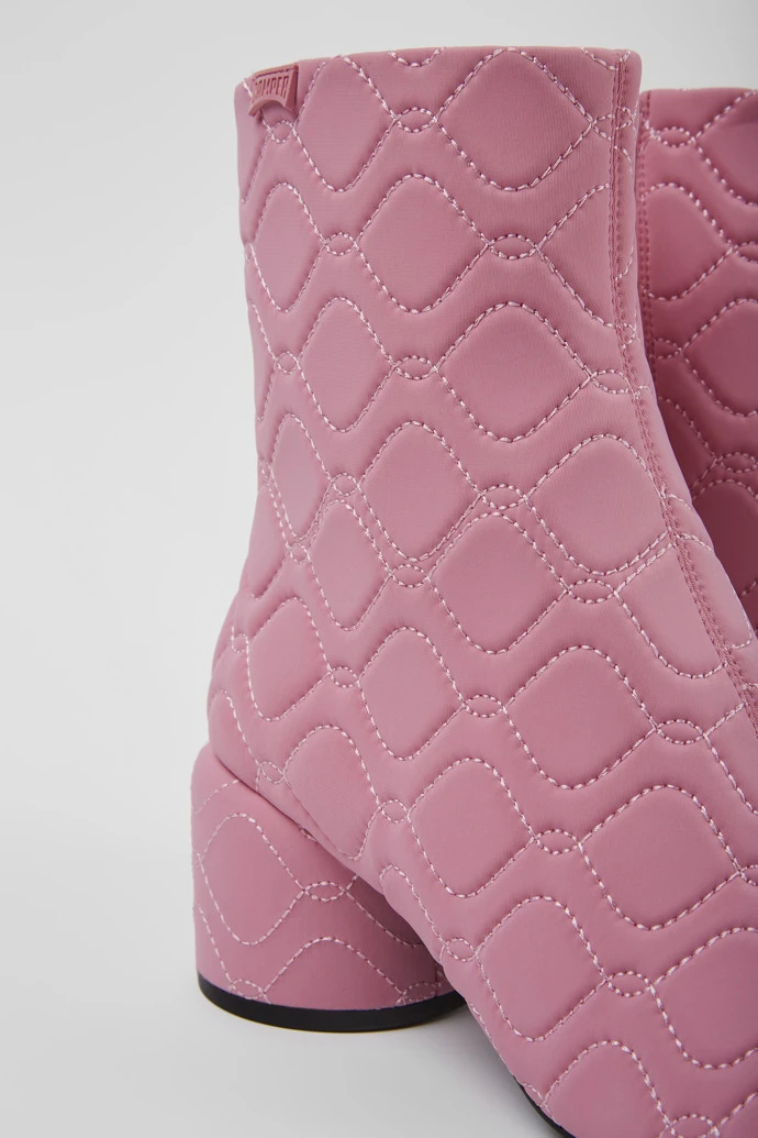 Pink textile women’s boots with OrthoLite® Recycled™ non-removable footbeds, and ABS and TPU outsoles.