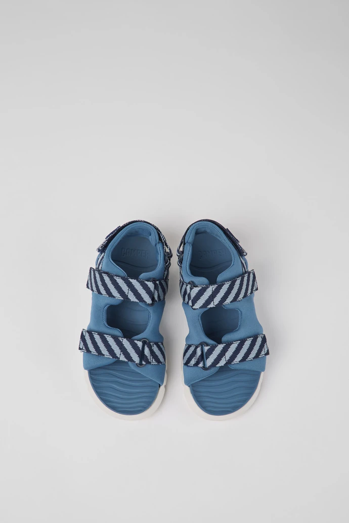 Multicolored textile kids’ sandals with a hook-and-loop closing system and EVA outsoles.