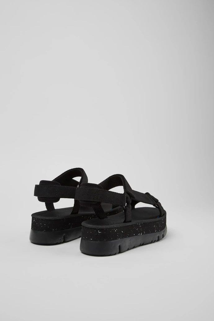 Black recycled PET women’s sandals with 100% EVA midsoles (20% recycled), XL EXTRALIGHT® outsoles (51% recycled), and a hook-and-loop closing system.
