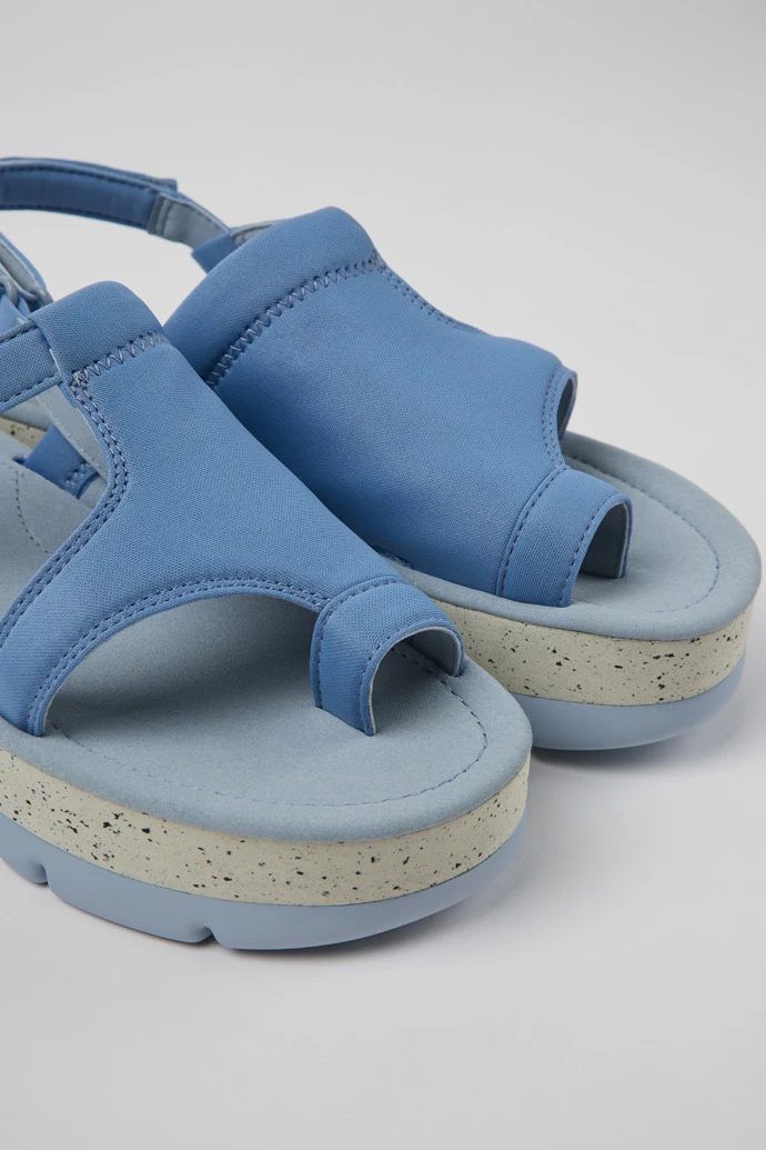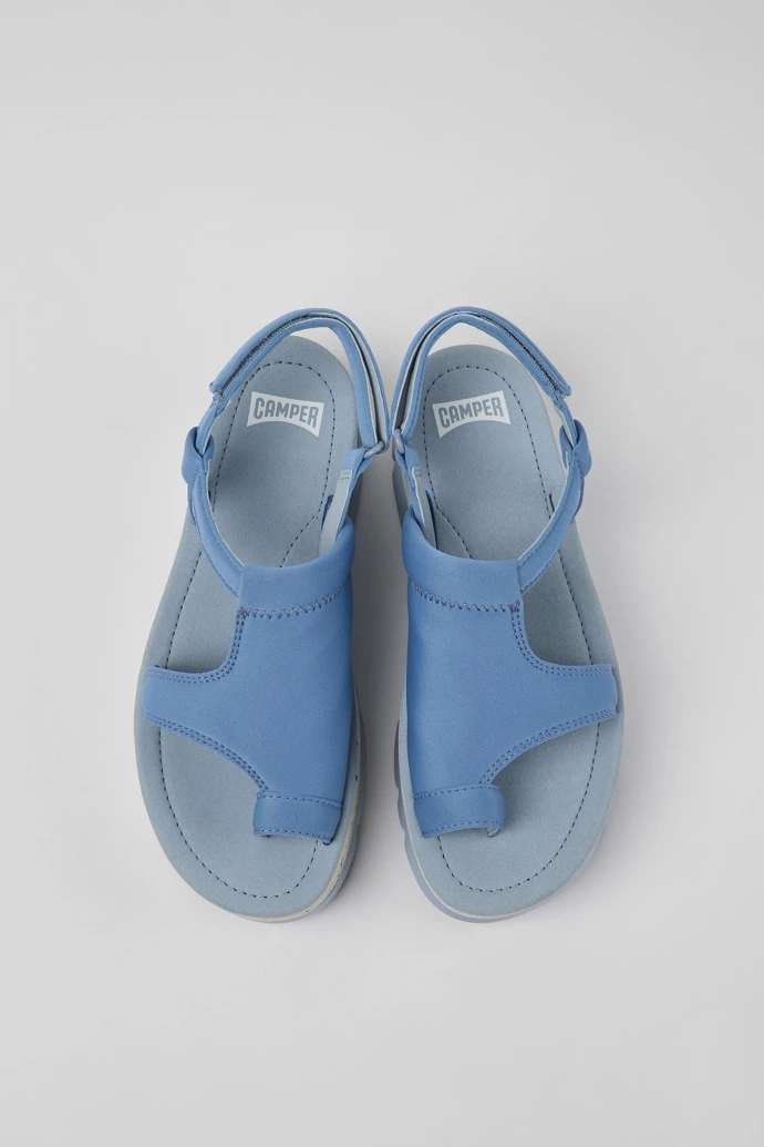 Blue textile women’s sandals with a hook-and-loop closing system and XL EXTRALIGHT® EVA outsoles (51% recycled).