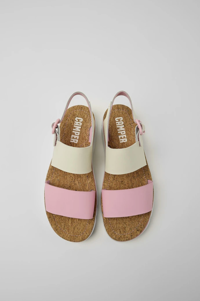 White and pink leather women’s sandals with XL EXTRALIGHT® Organixâ„¢ outsoles (30% bio-based sugarcane).