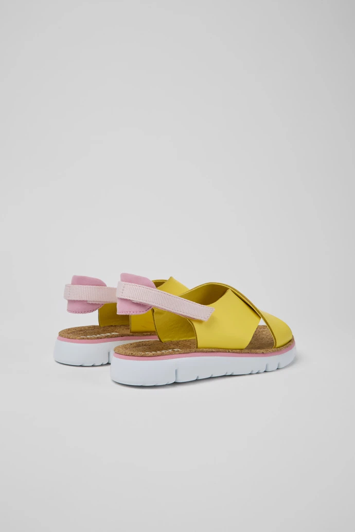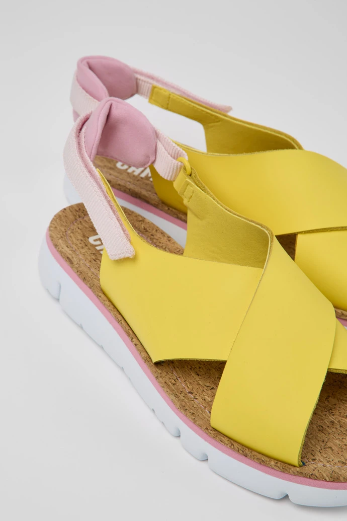 Yellow and pink leather and recycled PET webbing women’s sandals with XL EXTRALIGHT® Organix™ outsoles(30% bio-based sugarcane).