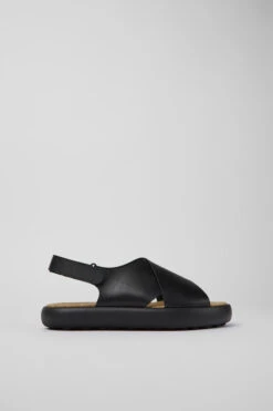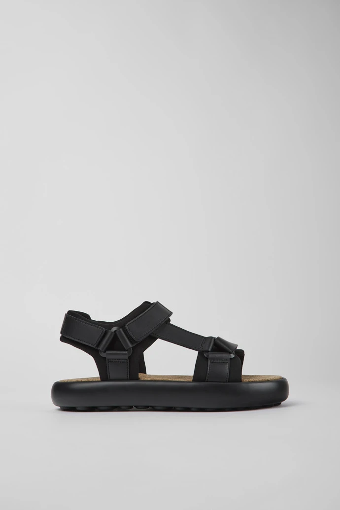 Black leather and textile men’s sandals with anatomic non-removable EVA footbeds and XL EXTRALIGHT® Organix™ 3.0 outsoles (30% bio-circular compounds).