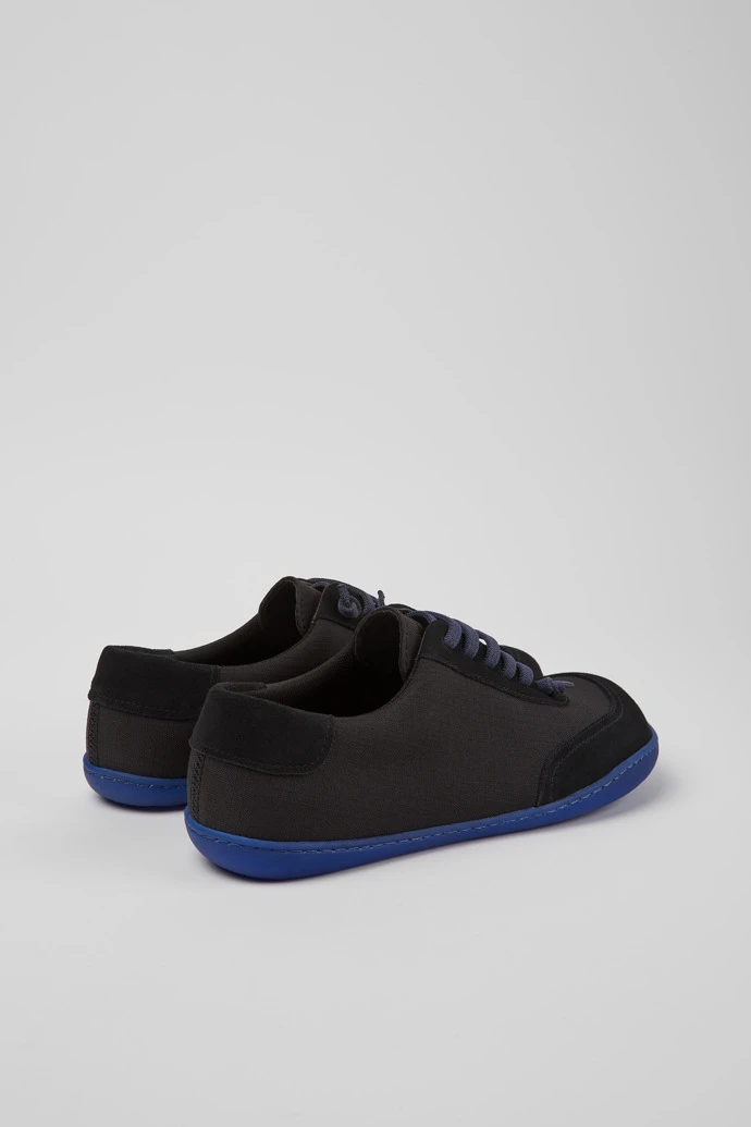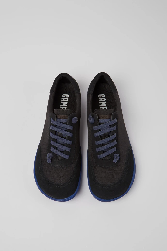 Black recycled PET and nubuck men’s shoes with 100% TPU outsoles (20% recycled).