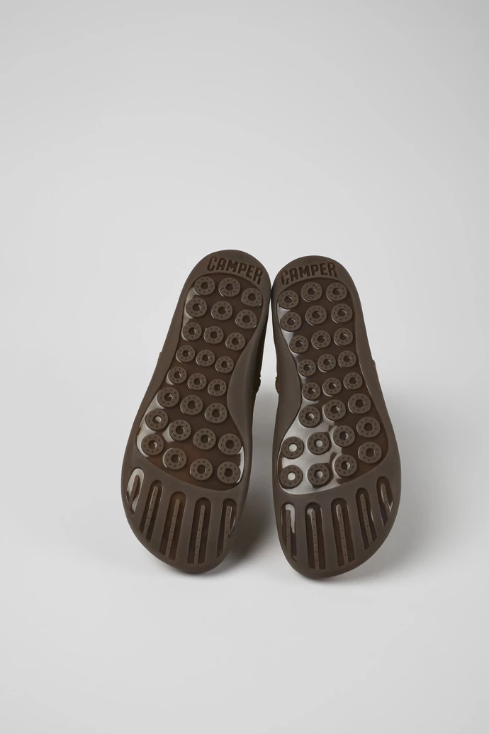 Brown nubuck women’s ankle boots with TPU outsoles (20% recycled).