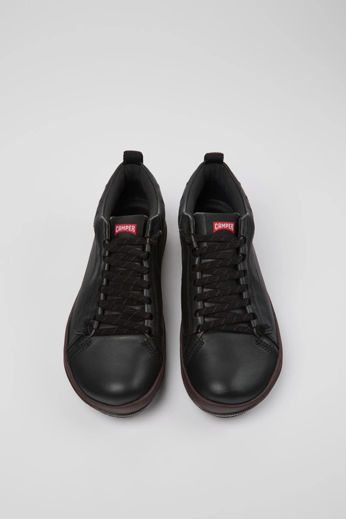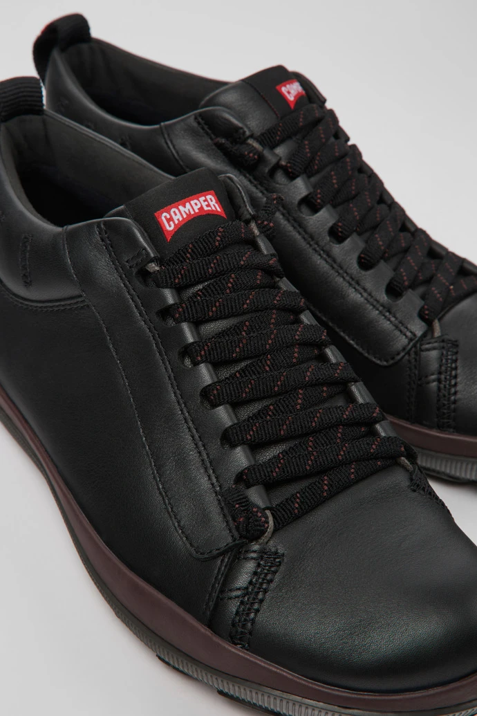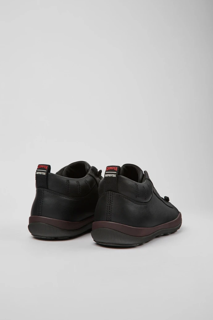 Black leather men’s shoes with GORE-TEX technology, OrthoLite® Recycled™ footbeds and 27% natural rubber Michelin outsoles.