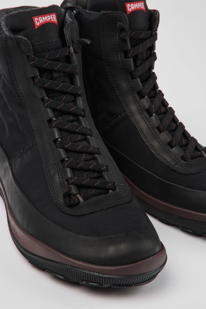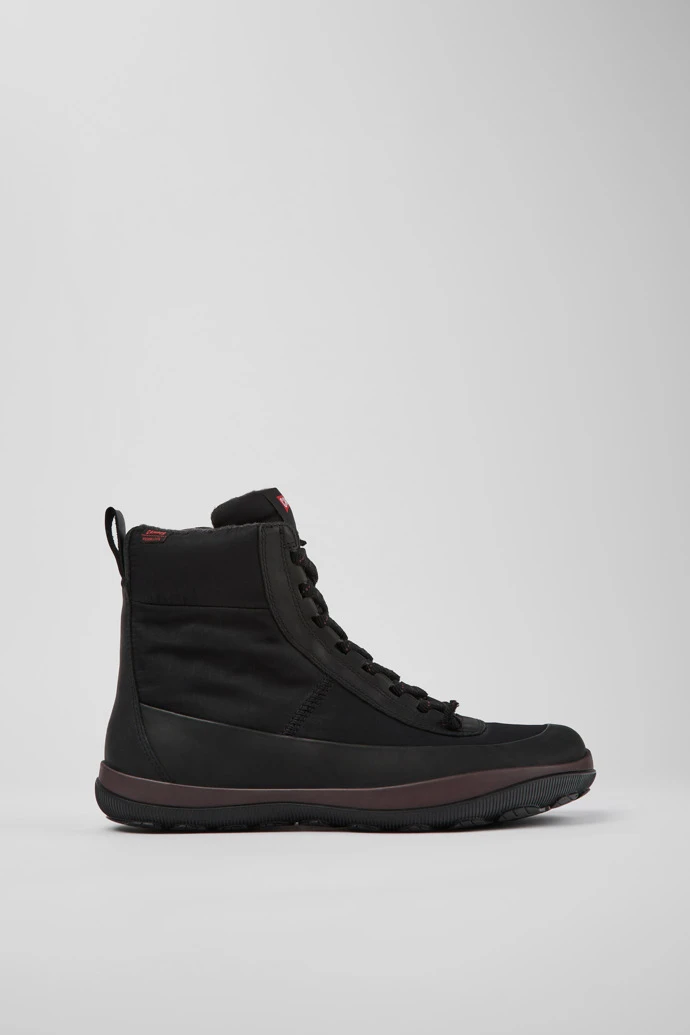Black recycled nylon and leather, with water repellant treatment, men’s boots, PrimaLoft® technology and 27% natural rubber Michelin outsoles.