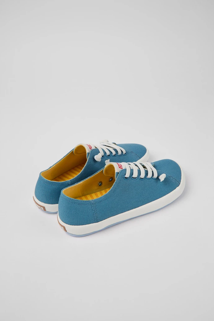 Blue textile women’s sneakers with OrthoLite® Recycledâ„¢ removable footbeds and rubber outsoles.