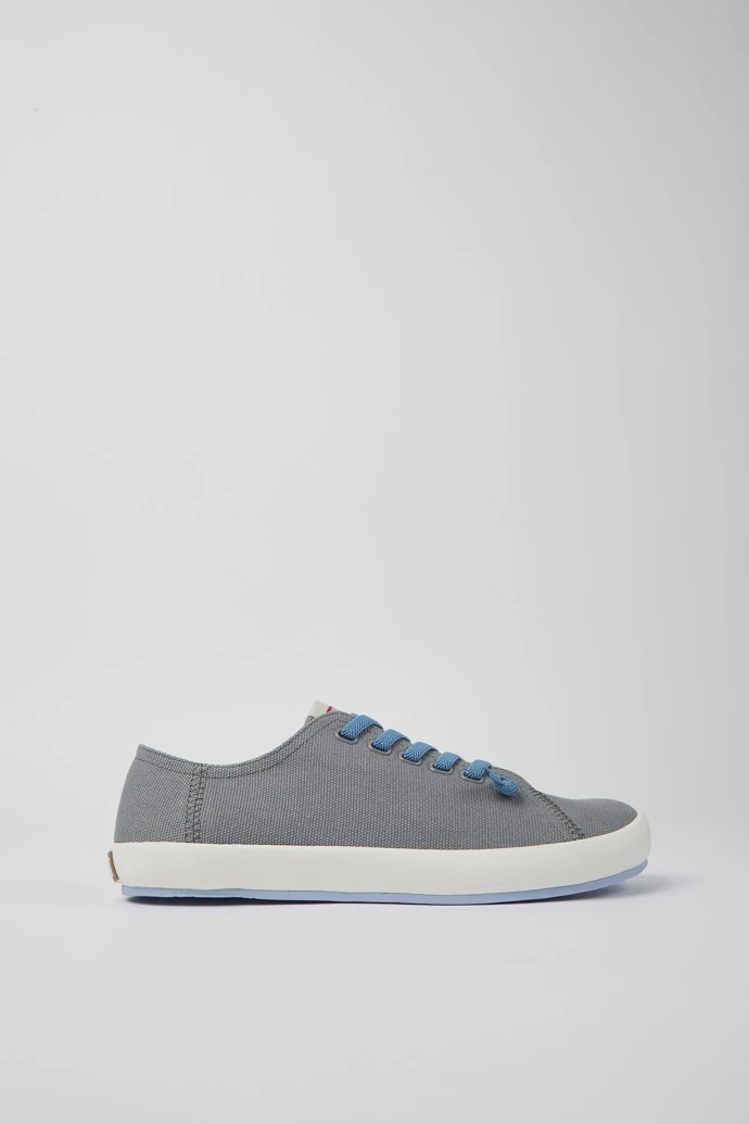 Gray textile men’s sneakers with OrthoLite® Recycled™ removable footbeds and rubber outsoles.