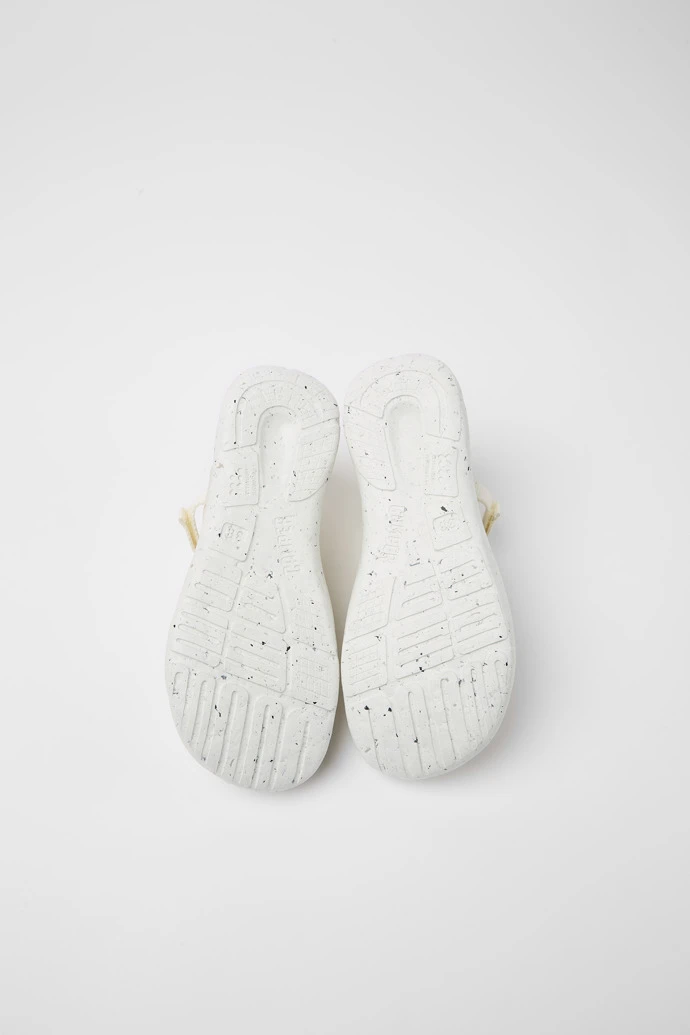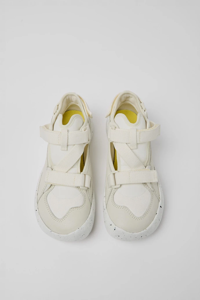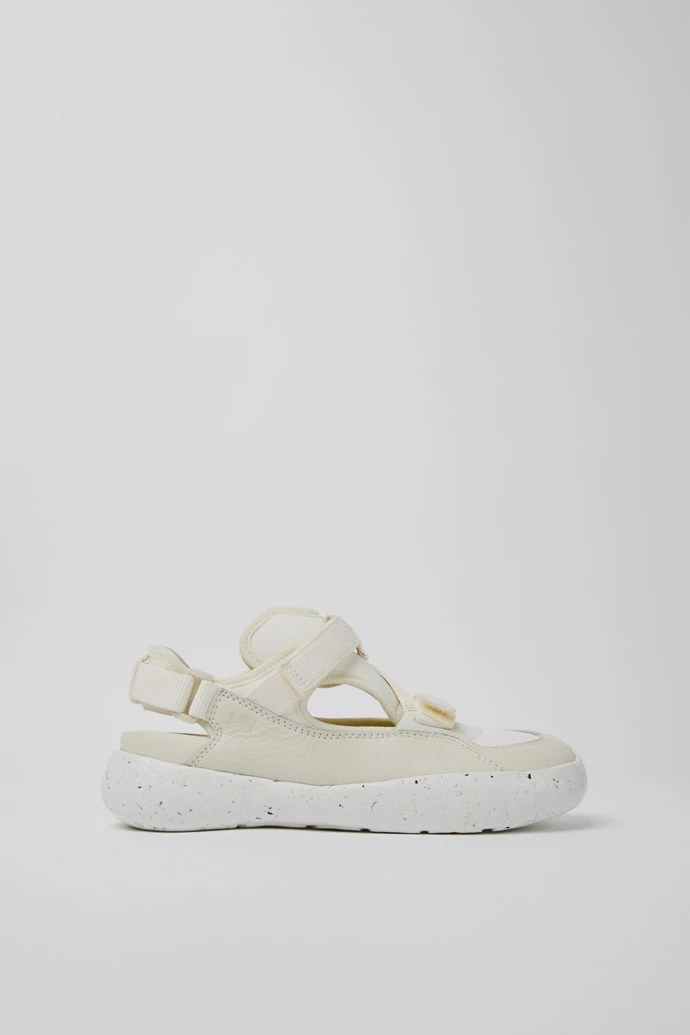 White recycled PET webbing, organic cotton, and leather women’s semi-open sneakers with XL EXTRALIGHT® Sustainable+ outsoles (51% recycled EVA) and a hook-and-loop closing system.