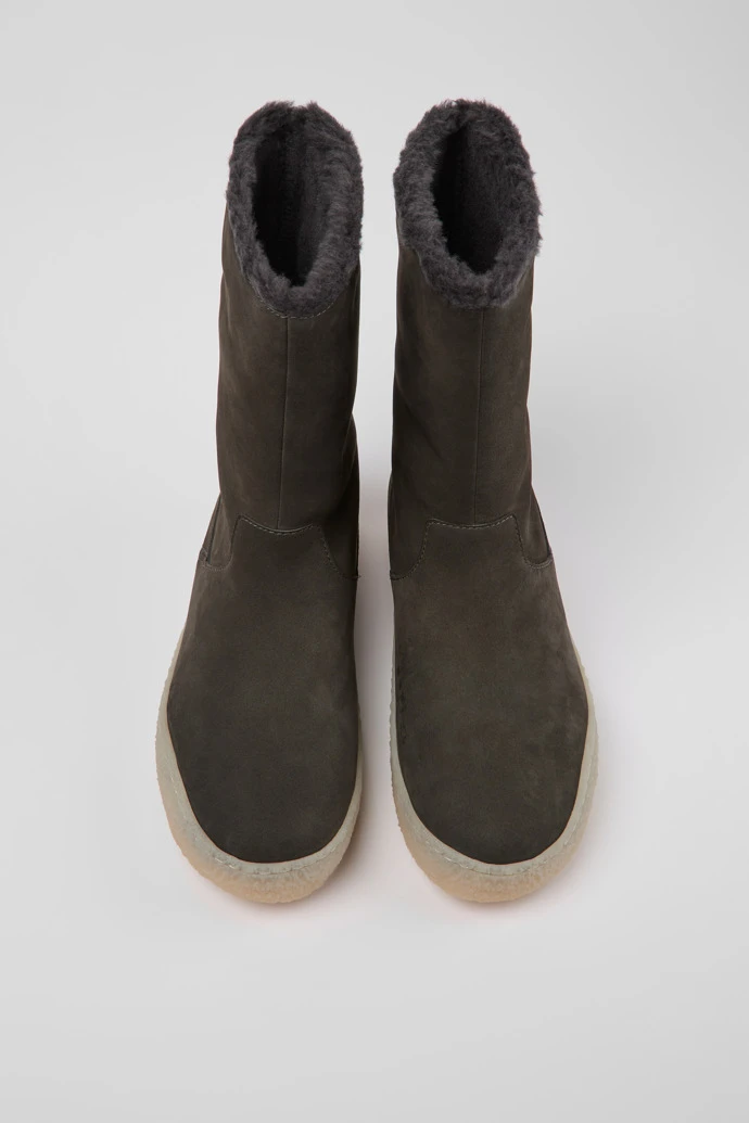 Gray nubuck women’s boots with OrthoLite® Recycledâ„¢ non-removable footbeds,and rubber outsoles.