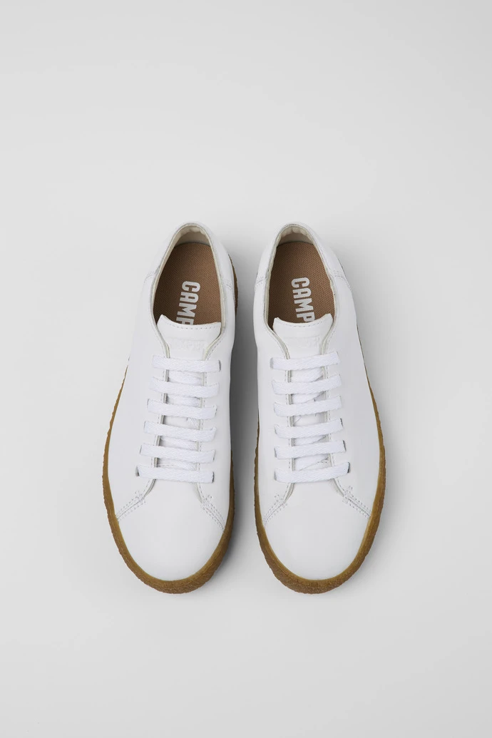 White leather women’s shoes with OrthoLite® Recycled™ non-removable footbeds and rubber outsoles.