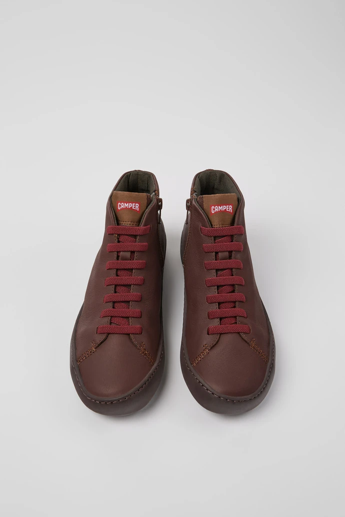Brown leather women’s sneakers with OrthoLite® Recycled™ footbeds and EVA outsoles (20% recycled).