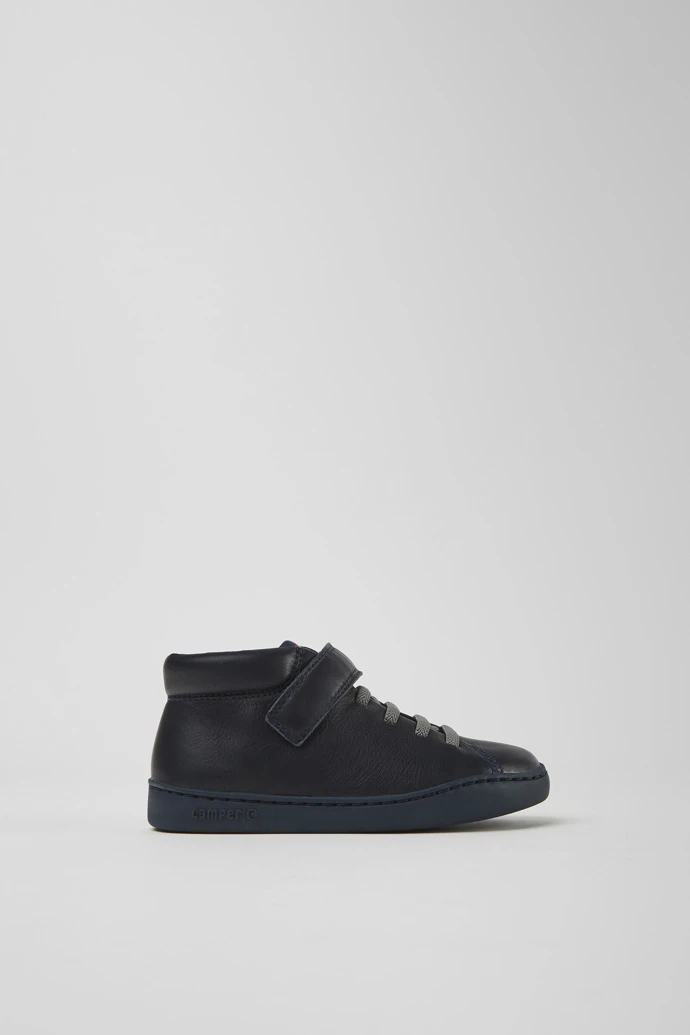 Dark blue leather boots for kids with Hook & Loop closing system, OrthoLite® removable footbed and 100% EVA outsoles (20% recycled)
