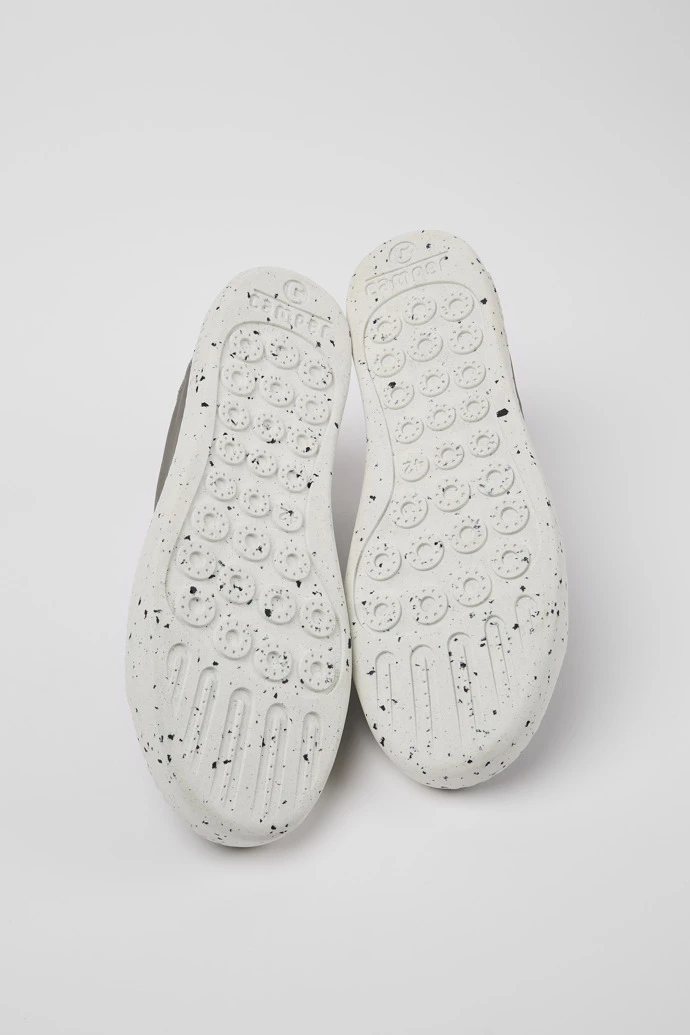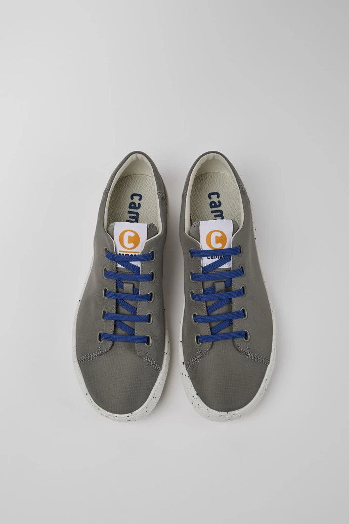 Grey 100% recycled PET men’s sneakers with 100% EVA outsoles (20% recycled).