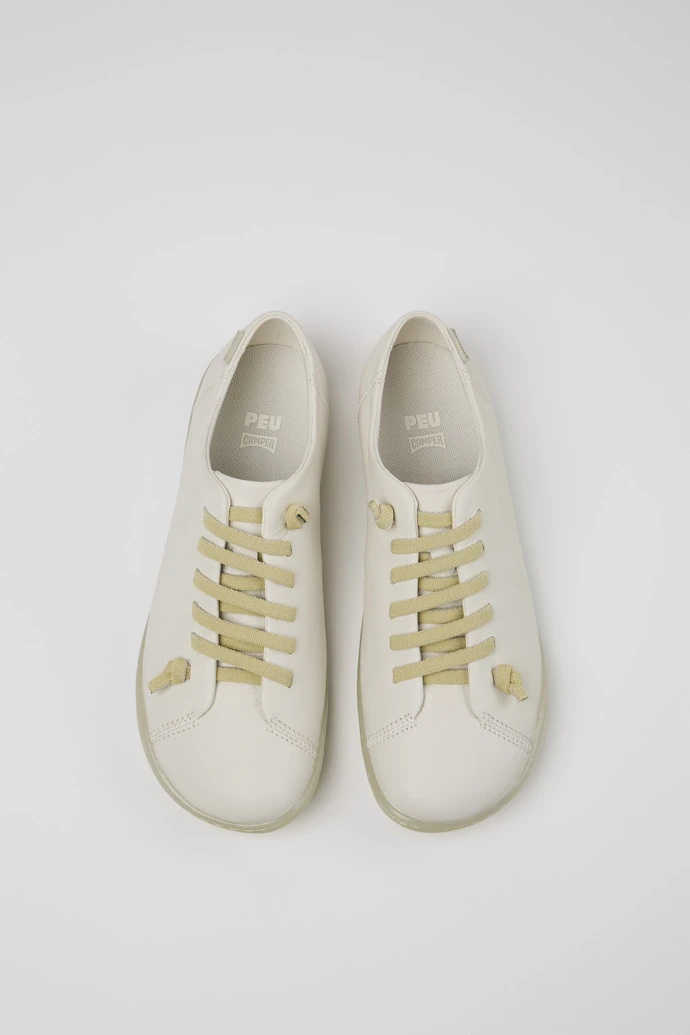 White leather women’s shoes with removable PU footbeds and TPU outsoles (20% recycled).