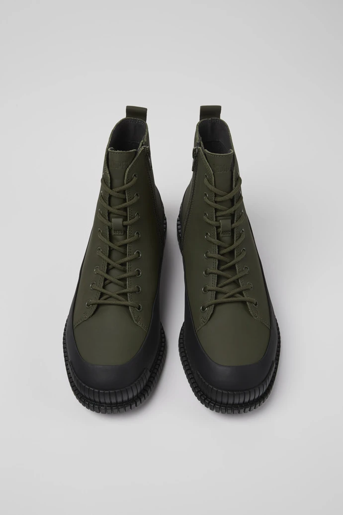 Smart khaki lace up boot for men. Full grain leather upper and EVA outsole with vertical cuts.