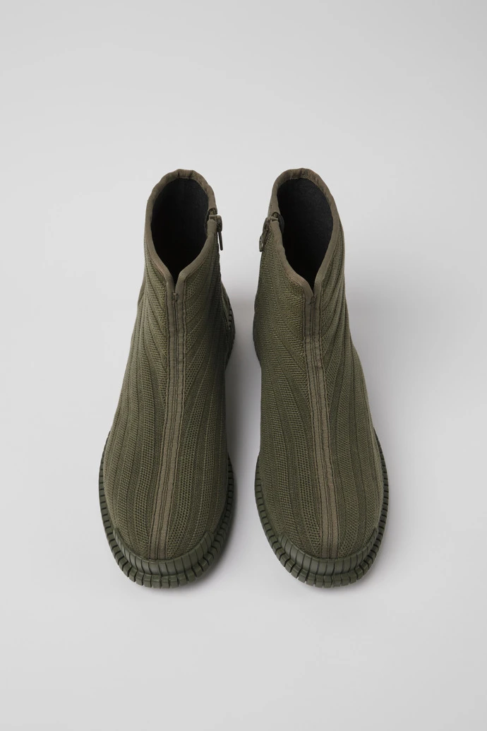 Green TENCEL™ Lyocell women’s ankle boots with OrthoLite® Recycled™ removable footbeds and EVA outsoles.