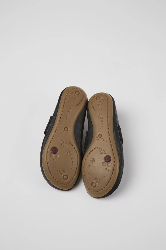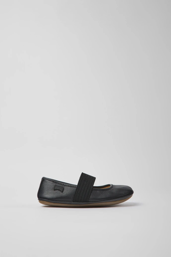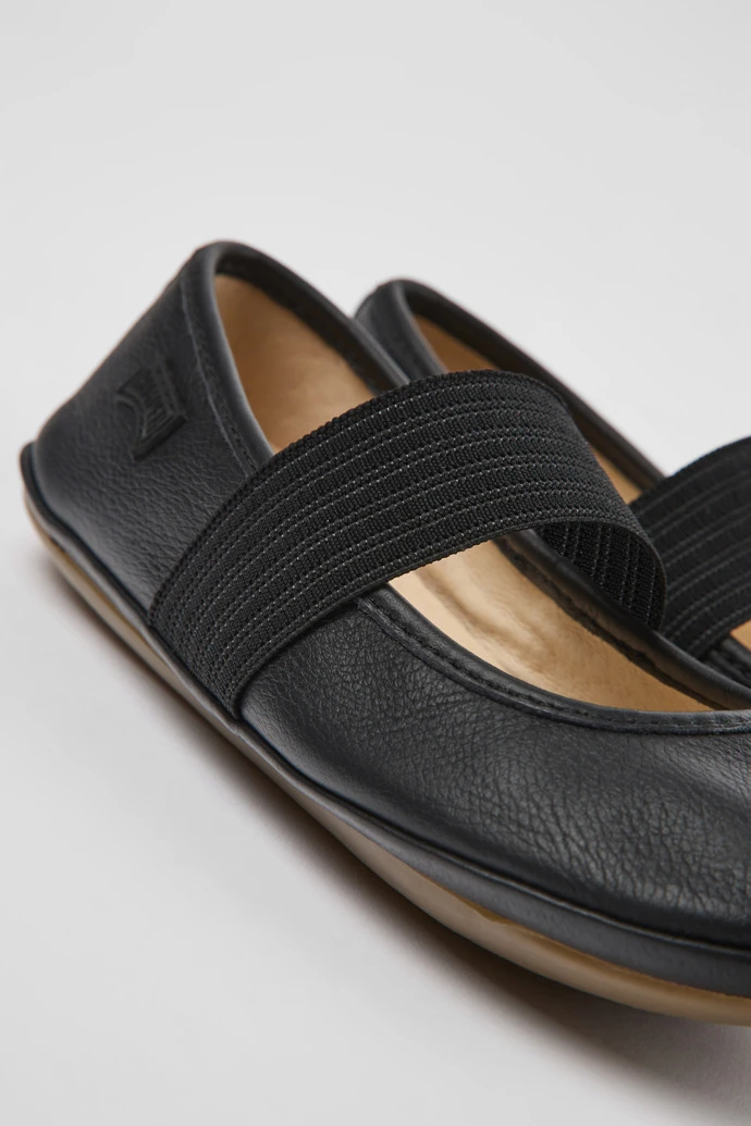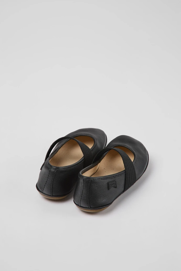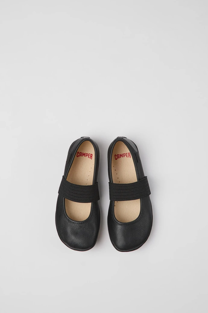 Black leather kid’s ballerinas with elastic band, removable EVA footbed and rubber outsole (20% recycled)
