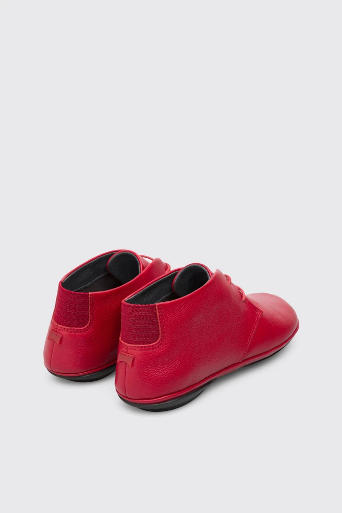 Red lace up ankle boot for women. Full grain leather with removable EVA insole.
