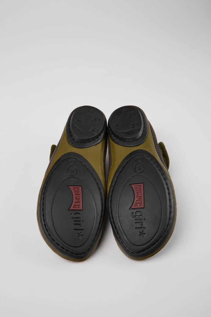 Green and black TENCEL® Lyocell mesh and leather women’s shoes with rubber outsoles and a hook-and-loop closing system.